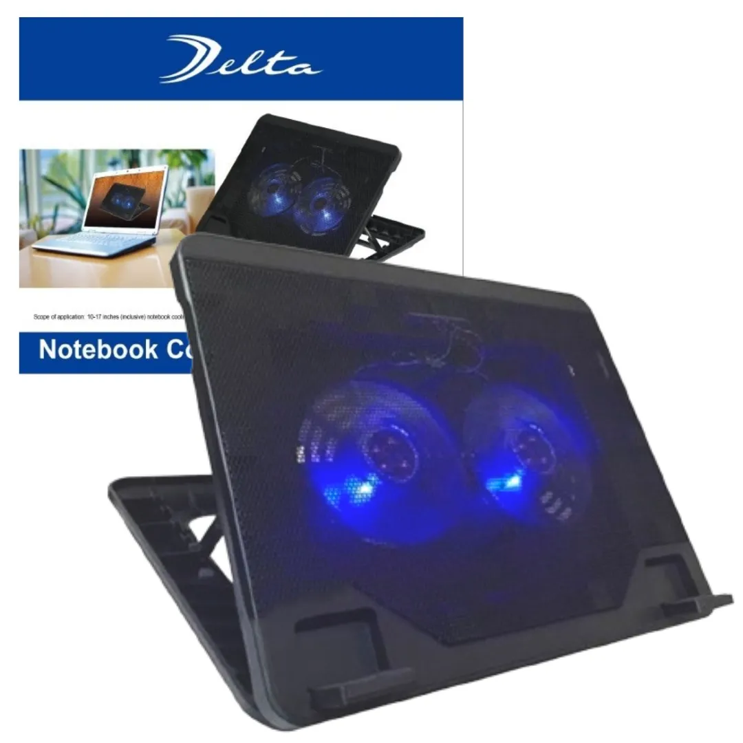 BASE DE ENFRIAMIENTO DELTA / 15” / 2 VENTILADORES CON LUZ LED AZUL / 2 PUERTOS USB 2.0 / HZT-M26 / BLACK