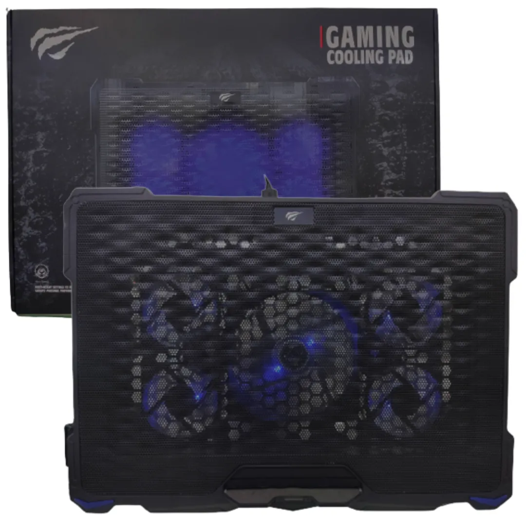 BASE DE ENFRIAMIENTO HAVIT / 15” / 5 VENTILADORES CON LUZ LED AZUL / 2 PUERTOS USB 2.0 + INTERRUPTOR PARA CONTROL DE VELOCIDAD / F2076 / BLACK